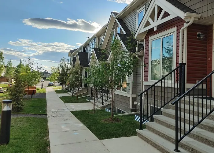 The accommodation includes self-catering facilities like coffee and tea makers, a refrigerator, and glassware for guests' convenience. Genesis Townhouse Apartment is 15 minutes' drive from Calgary airport and 30 minutes' drive from Downtown- West Kerby C train station.